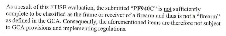 That particular frame kit has previously been determined by the very same ATF to NOT be a firearm. The ATF determination letter stating so can be found here, but to speed this up a tad, I have also included a screen grab of the pertinent portion of the letter.