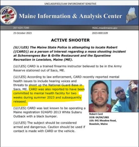 The mass murder suspect in Maine, whom I will not ever name, is being constantly referred to by the mainstream media as an "Army reservist" and a "firearms instructor."
